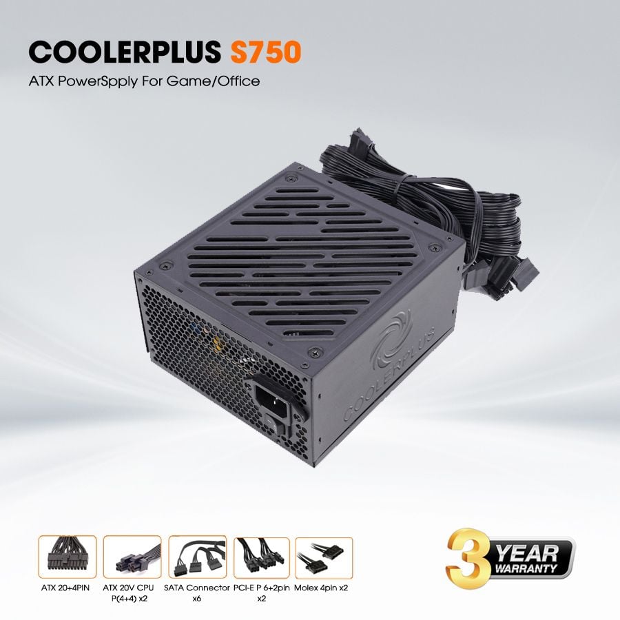 Mã sp: S750. Màu sắc: Đen. Bảo hành: 3 năm (bao gồm cả cháy nổ). Công suất tối đa: 750W. Nguồn đầu vào: 200 - 240V AC 7A 50-60Hz. Loại quạt : 140MM fan both silent and efficient. Tính năng bảo vệ: + OVP (Over Voltage Protection) – Bảo vệ quá áp: SCP (Short Circuit Protection) – Bảo vệ chạm tải: UVP (Under Voltage Protection) Bảo vệ thấp áp. Chứng nhận quy chuẩn SX: CE, Rohs, Active PFC.